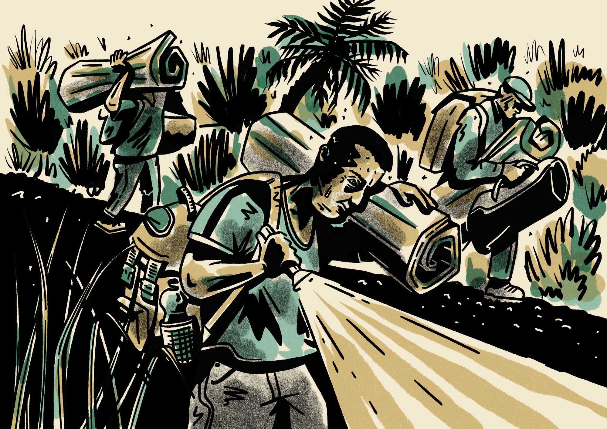Lima also told us that, at work, they were closely supervised and repeatedly harassed by the farm manager and security guards, who were always standing close to them. When the manager reprimanded a friend of Lima’s in the first few days and raised his arm, Lima could see a pistol in his waistband. He then noticed that all the security guards were carrying weapons.