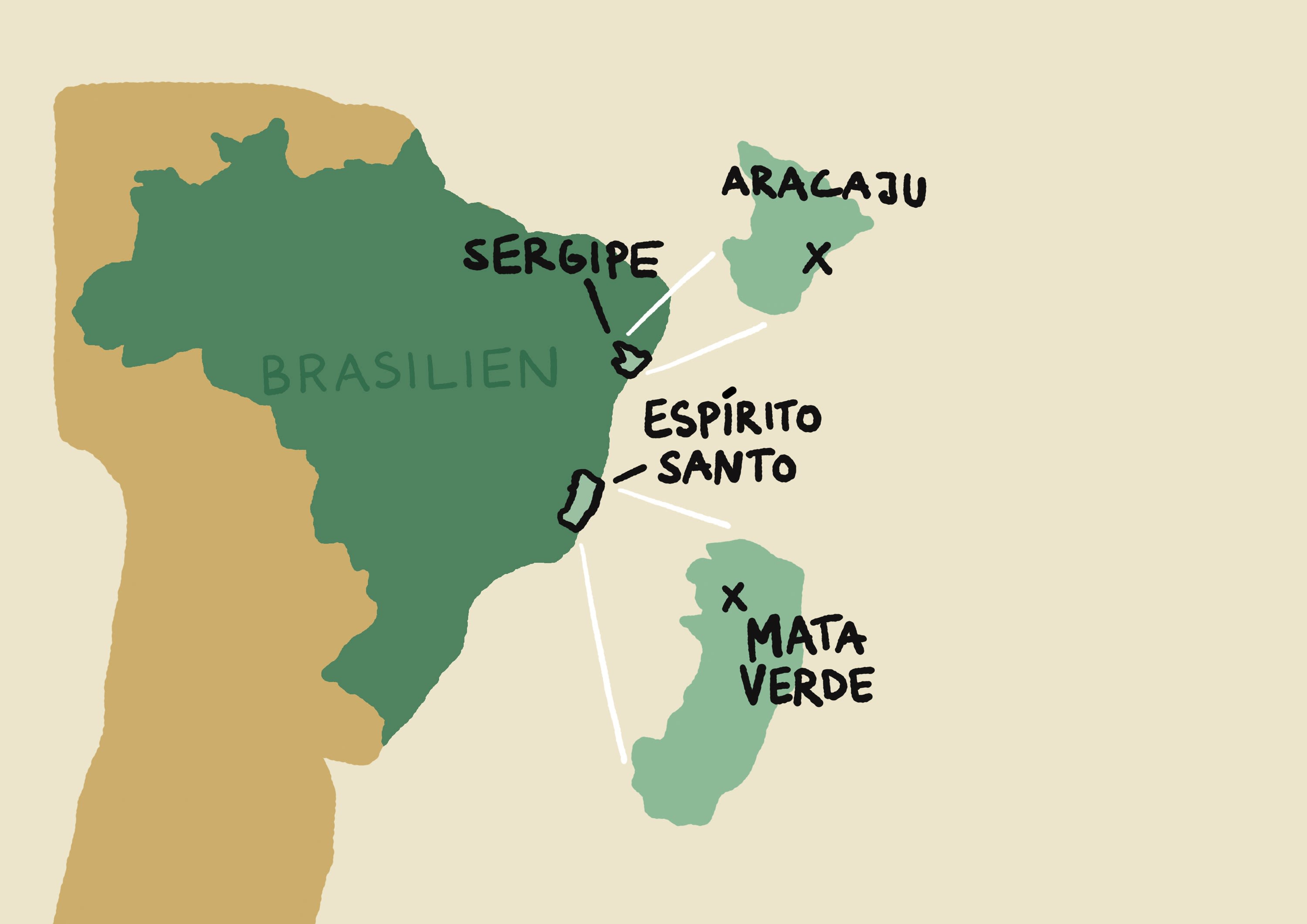 Die Farm Mata Verde im Bundesstaat Espírito Santo liegt 1200 Kilometer von Aracaju entfernt, der Hauptstadt des Bundesstaats Sergipe.