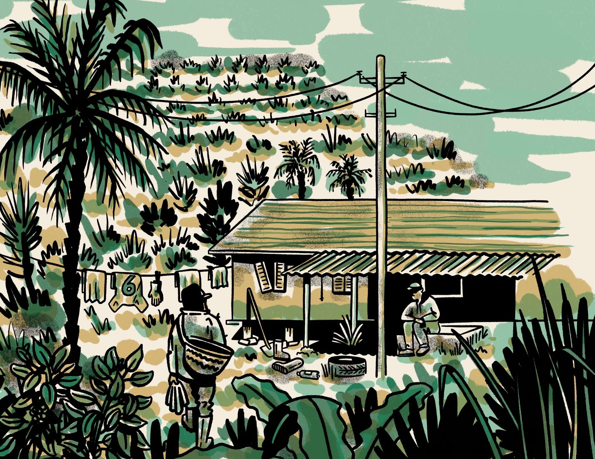 Tagsüber brennt die Sonne vom Himmel, sie werden von Insekten gestochen, die Stiche und Bisse verursachen Kopfschmerzen, erzählt er. Die Plantagen liegen in hügeligem, zum Teil steil abfallendem und rutschigem Gelände.