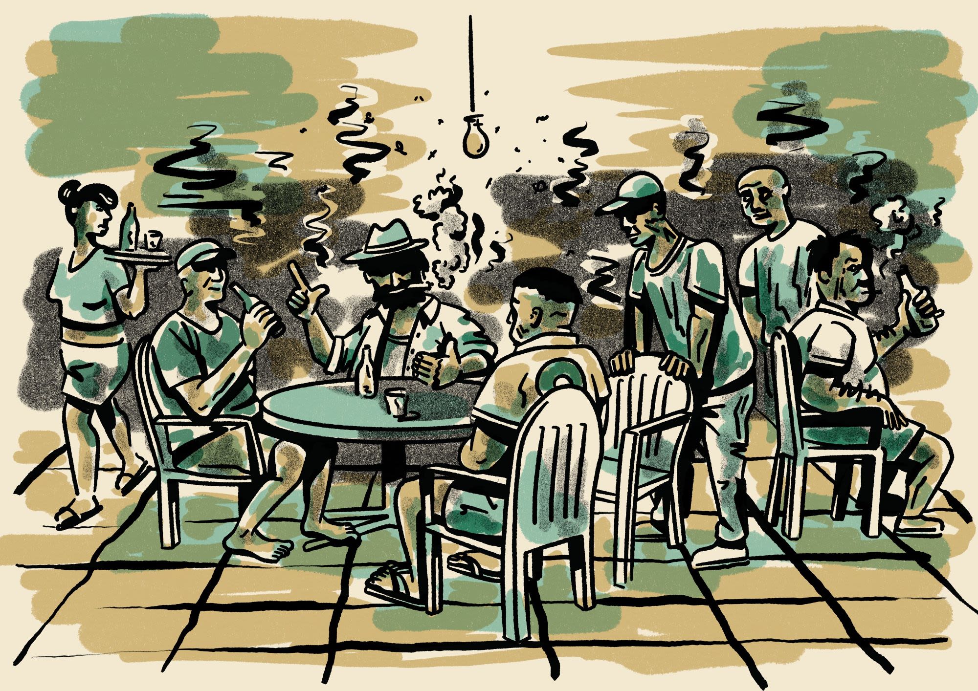 Auch ein Neffe des Farmbesitzers ist jeweils dabei. Eines Abends erzählt dieser, wie ein Freund von ihm einmal in der Kneipe eine Pistole auf den Tisch gelegt habe. Als ein Polizist vorbeigekommen sei und ihn aufgefordert habe, die Waffe wegzulegen, habe sich dieser geweigert.