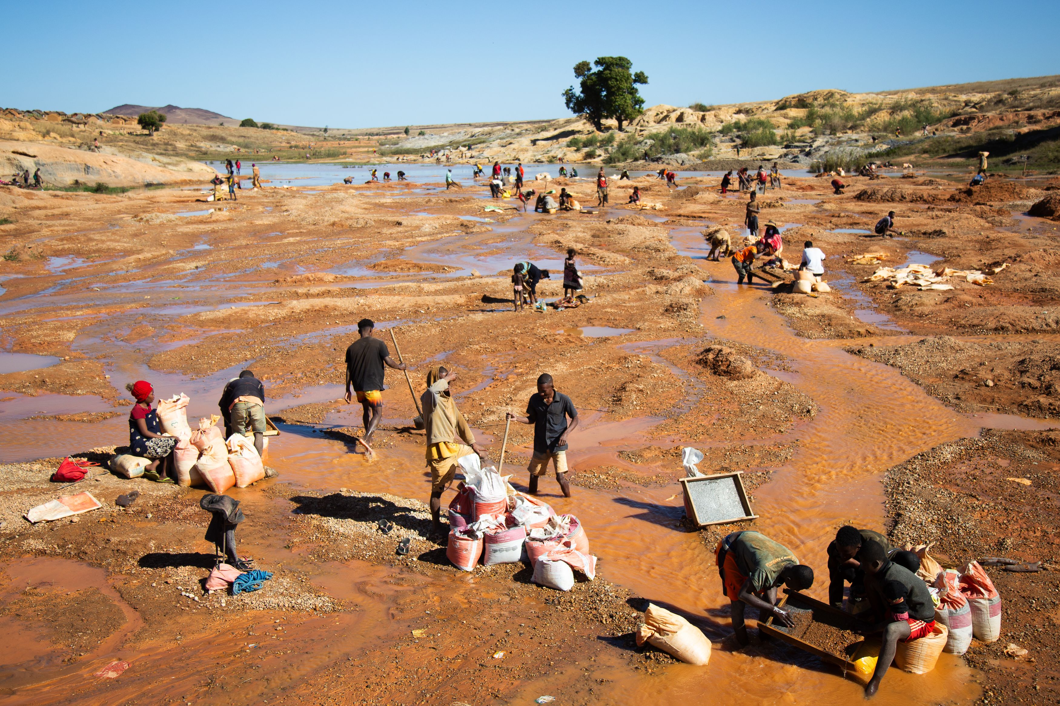 «Ich verdiene 10'000 Ariary pro Tag [2 Franken]», erzählt Sarobidy, ein 18-Jähriger, der mit seinem Vater in der Mine arbeitet, seit er 15 ist. «Wenn ich komme, werde ich bezahlt, wenn nicht, dann nicht.» Sein Fall ist nicht ungewöhnlich. Die Kinder helfen ihren Eltern ab dem Alter von 5 Jahren dabei, den in den Minen geschürften Kies zu sortieren und zu waschen. Ab 15 Jahren gelten sie als Erwachsene und gehen unter die Erde.
