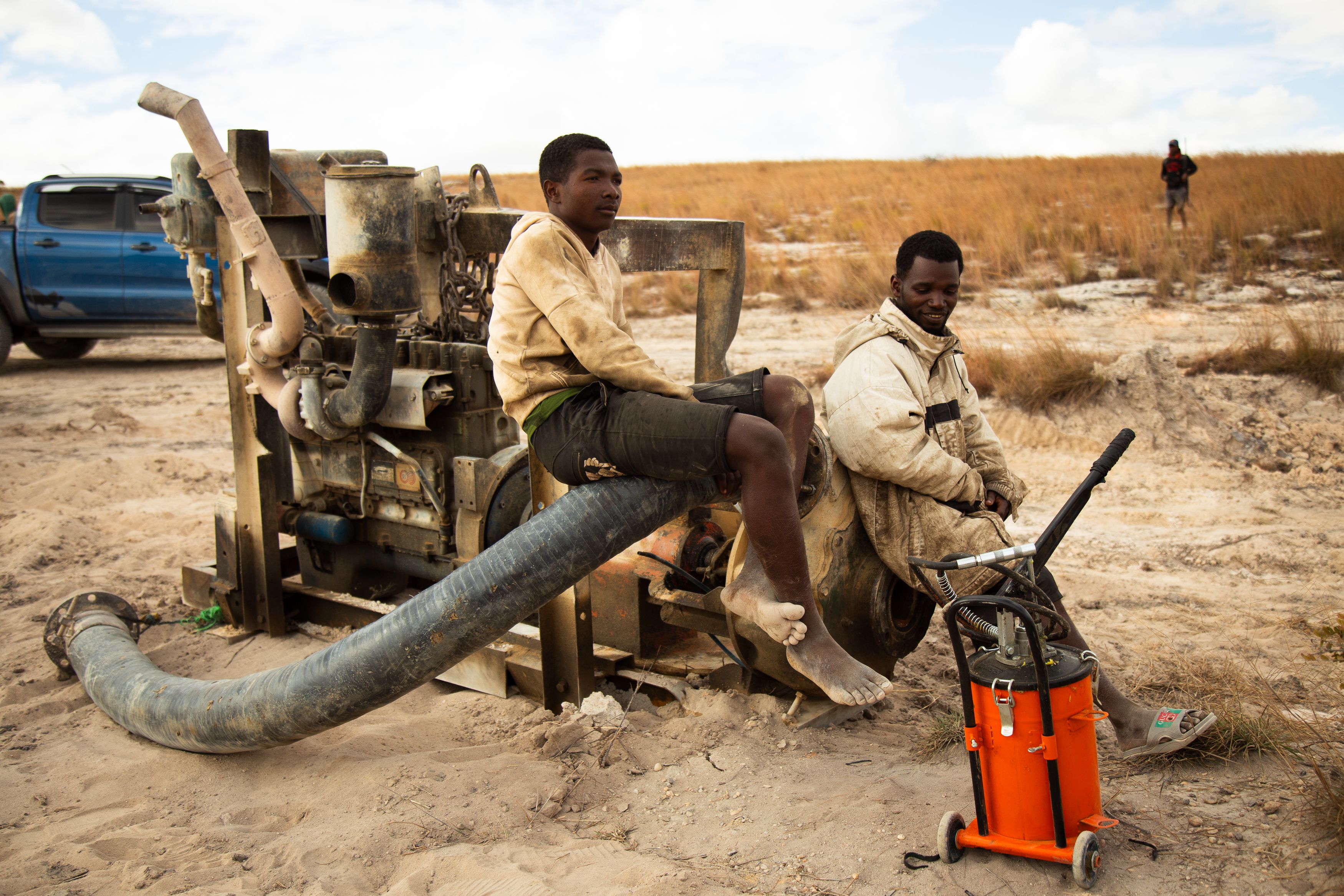 Diese Aussicht hat den Appetit von Guillaume Ah Thion geweckt, einem chinesisch-madagassischen Jungunternehmer, der eine Geschäftsbeziehung mit dem Berner Edelsteinimporteur Alex Leuenberger aufgebaut hat. Kürzlich hat er mit seinem Bruder das von seinem Vater gegründete Bergbauunternehmen Gondona übernommen. Das Gelände am Ende einer Schotterpiste sieht aus wie eine grosse Narbe, welche die Savanne in zwei Hälften teilt. Zwei Bagger haben die wenigen Meter «unfruchtbare» Erde über der Edelsteinschicht abgetragen und einen langen Schlauch in die sandige Erde gegraben. Eine Pumpe pumpt fleissig türkisfarbenes Wasser ab.
