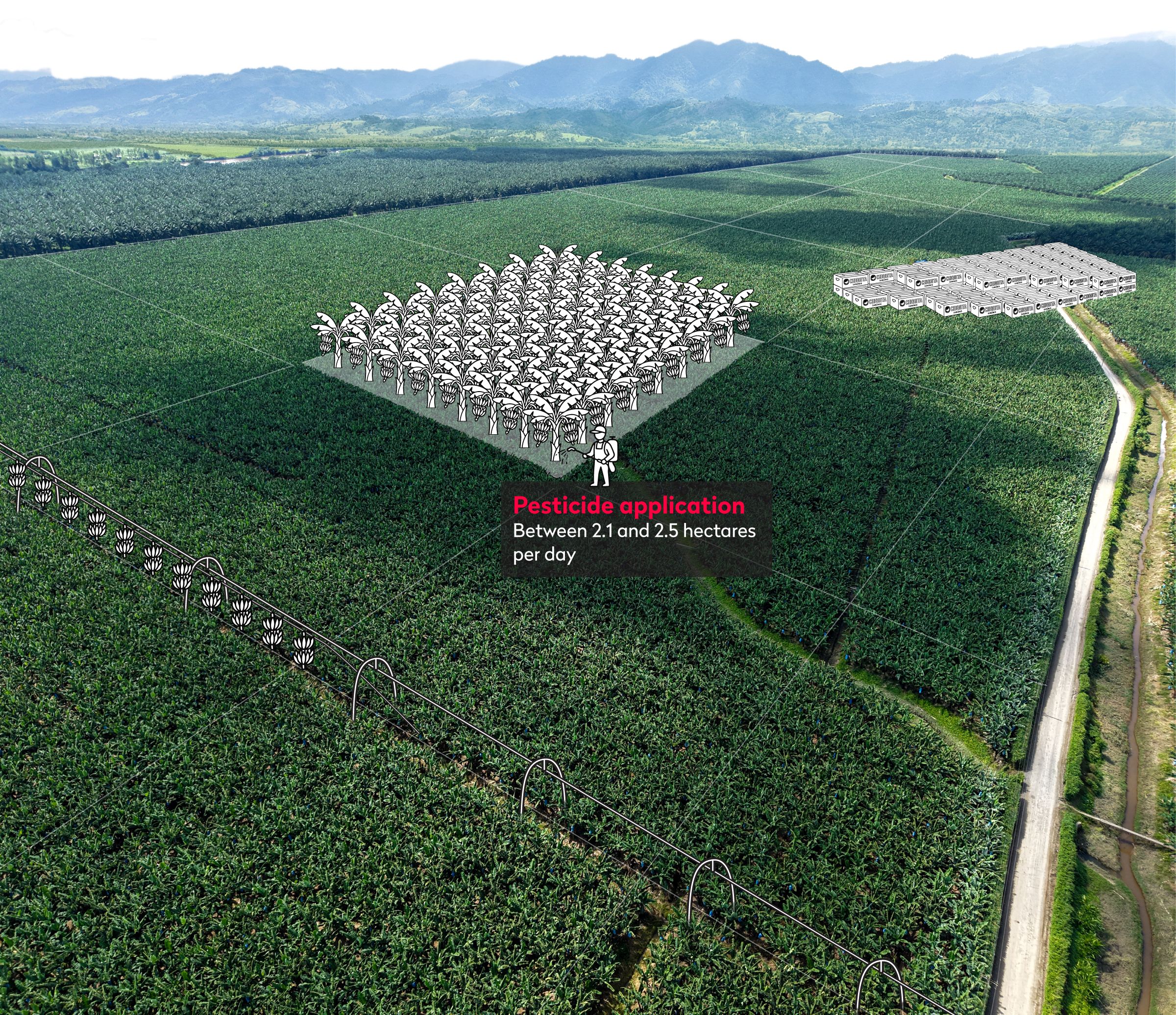 At Chiquita, banana bunches are wrapped in blue bags containing insecticides.