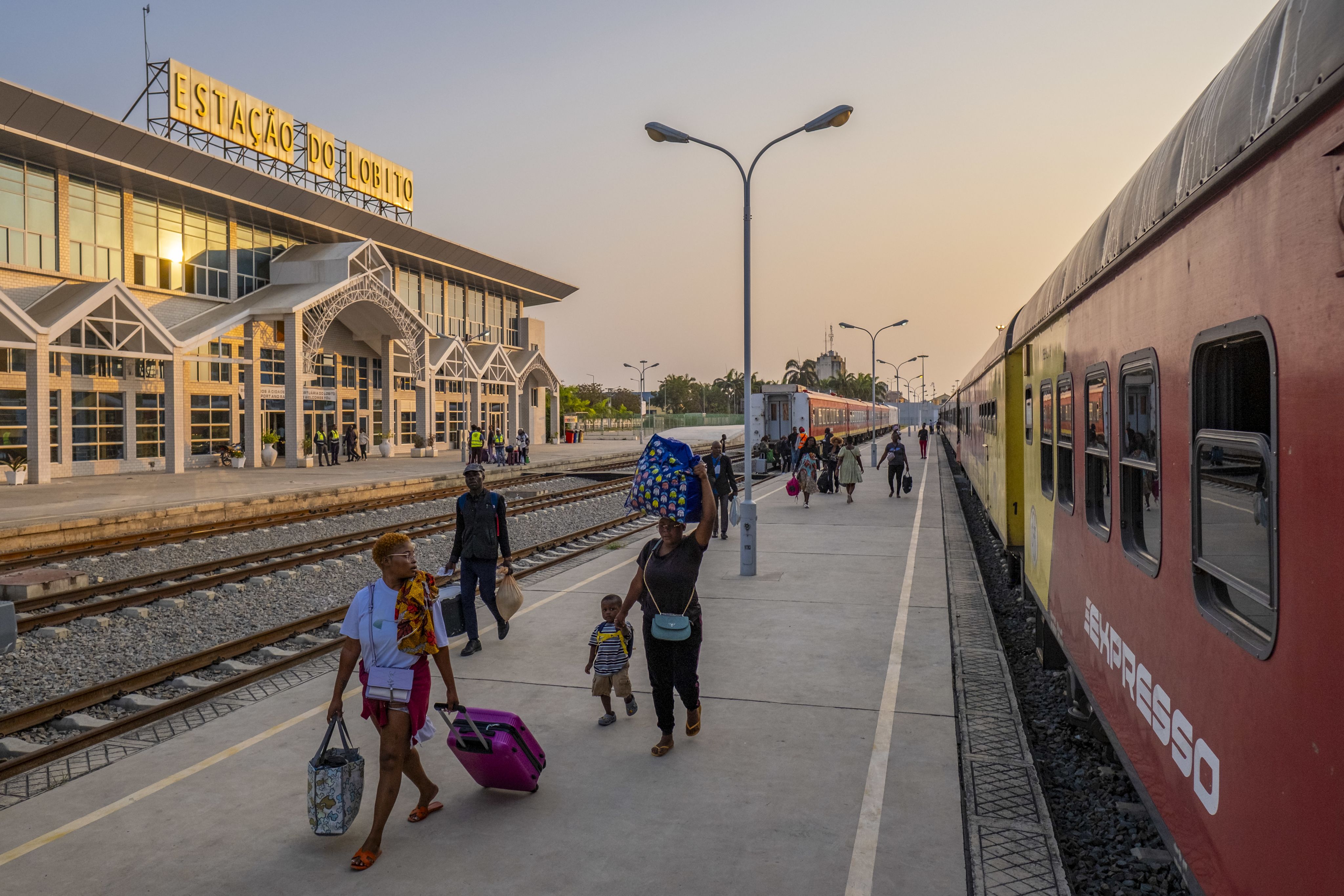 Ils ont fait la queue la veille au petit matin pour décrocher leur billet de train. Par petits groupes, les bras chargés de bagages compacts, les enfants enroulés dans les pagnes bigarrés de leurs mamans, les voyageurs et voyageuses au départ de Lobito se pressent dans les vieux wagons du Caminho de Ferro de Benguela. La compagnie ferroviaire centenaire, qui opérait déjà la ligne au temps de la colonisation portugaise, traverse l’Angola d’ouest en est, jusqu’à la confluence avec la République démocratique du Congo (RDC) et la Zambie.