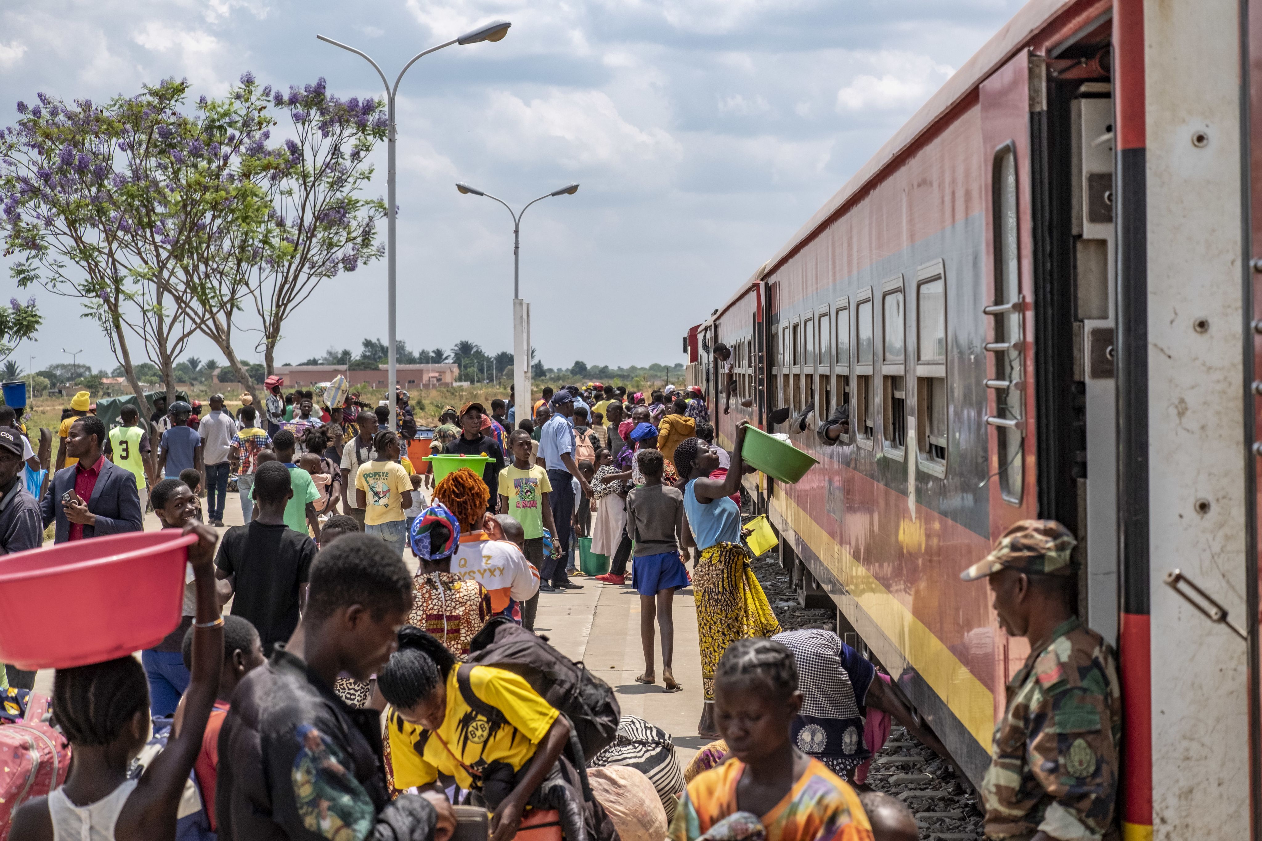 Unter Schreien und Weinen werden die Menschen, die seit Stunden in einer Schlange warten, von den Sicherheitskräften zurückgedrängt, sodass nur eine Handvoll Privilegierter passieren kann. Die meisten werden die siebenstündige Reise nach Luena stehend verbringen, zusammengequetscht in einem heissen Waggon. Die Polizei erlaubt uns nicht, diesen Moment zu dokumentieren. «Sie wollen nicht, dass Sie die Situation zeigen», sagt ein Angestellter der Bahngesellschaft.